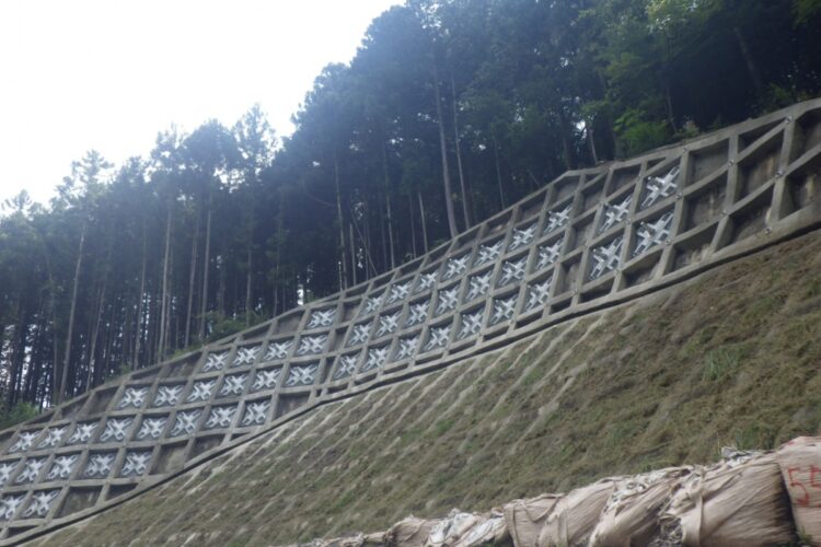 沢の護岸工事と、沢にボックスカルバートを設置して橋的な通路を作成しました。